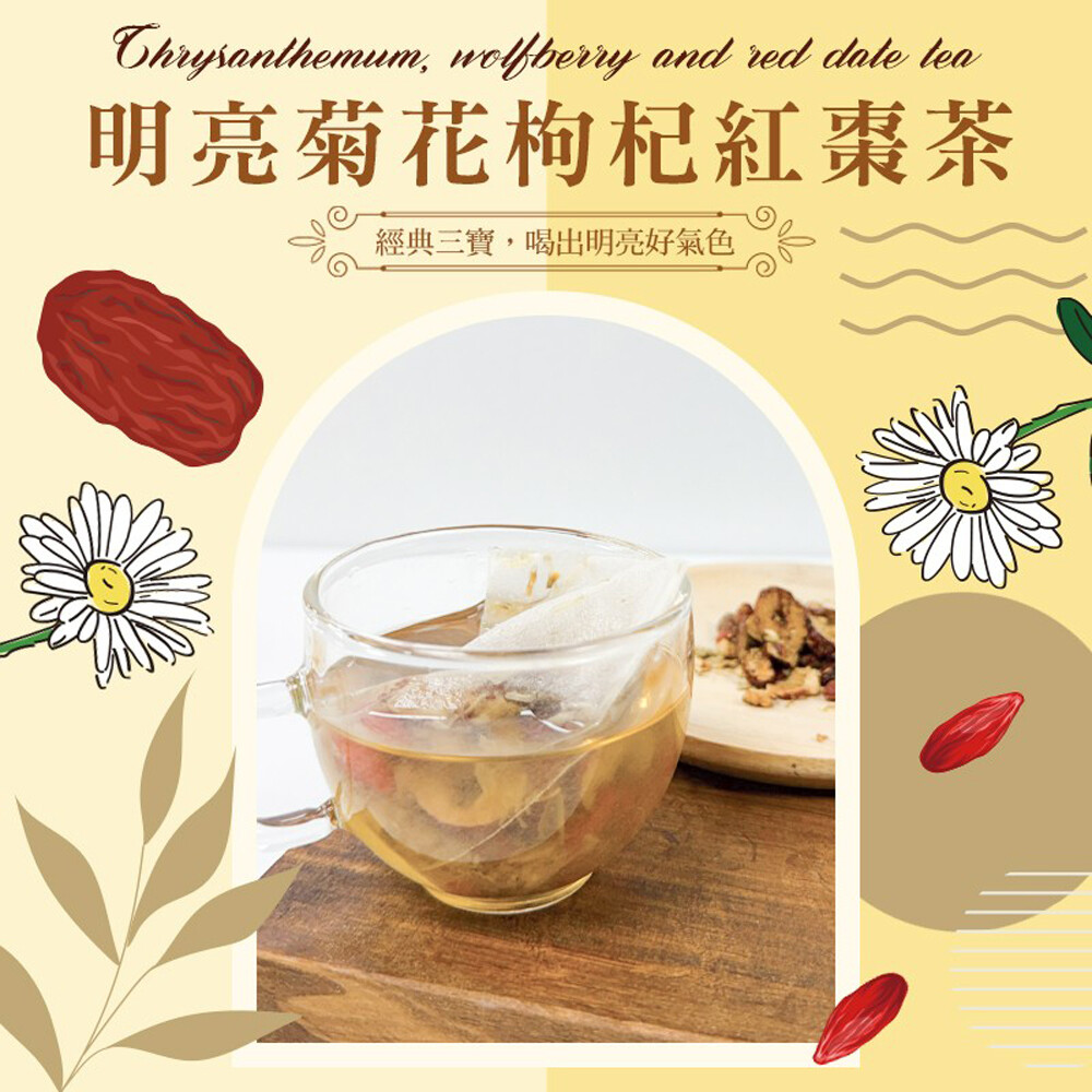 方案1 1入 售價$218 均價$218 方案2 2入 售價$316 均價$158 方案3 4入 售價$532 均價$133 方案4 8入 售價$1008 均價$126 商品介紹菊花清香舒爽 紅棗溫潤香甜 枸杞自然回甘
