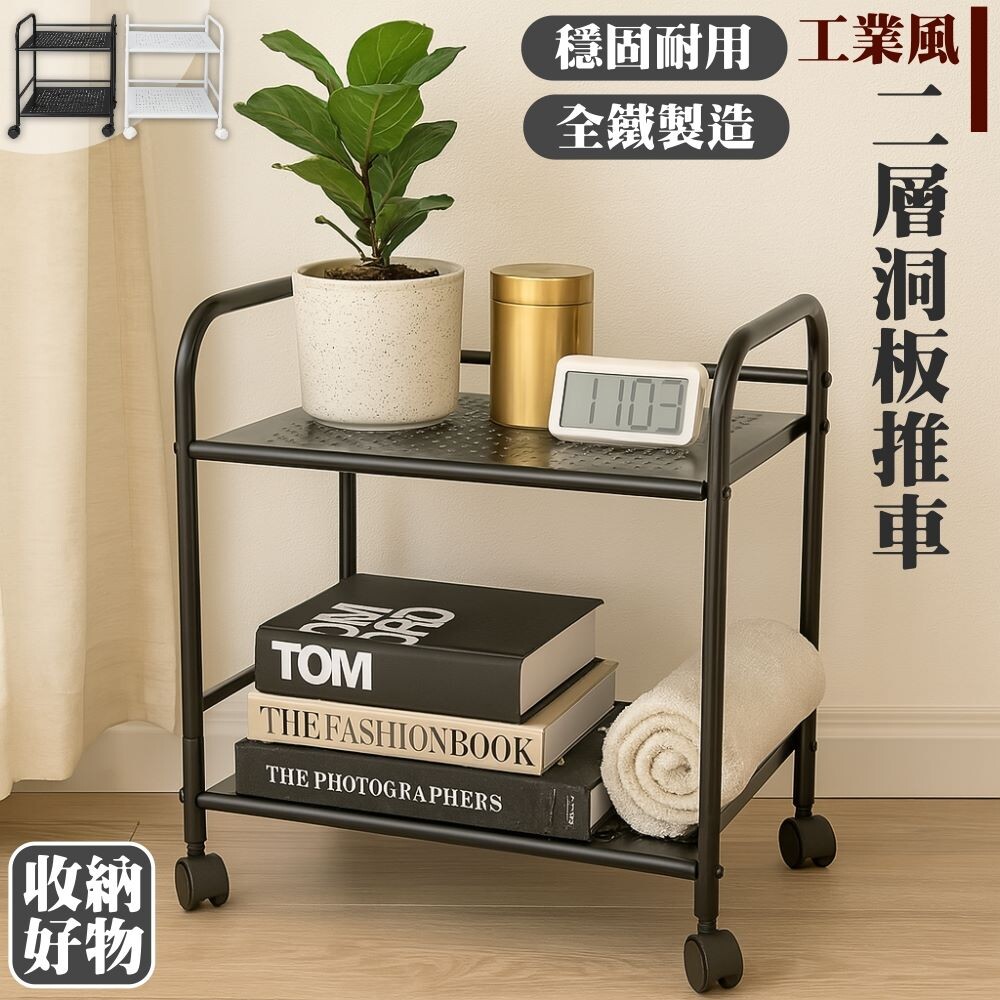 【尊爵家Monarch】二層沖孔洞板鐵推車 收納車 鐵板置物架 手推車 文書車 置物架 附輪推車