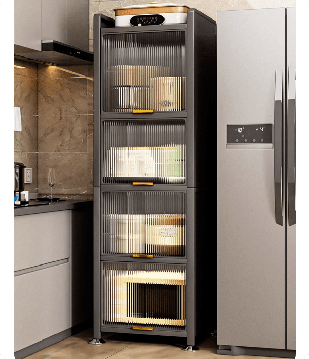 多功能儲物櫃 層櫃 廚房置物架收納櫃 5層夾縫櫃 落地多層收納櫃子 防塵帶門微波爐櫥櫃 餐邊櫃