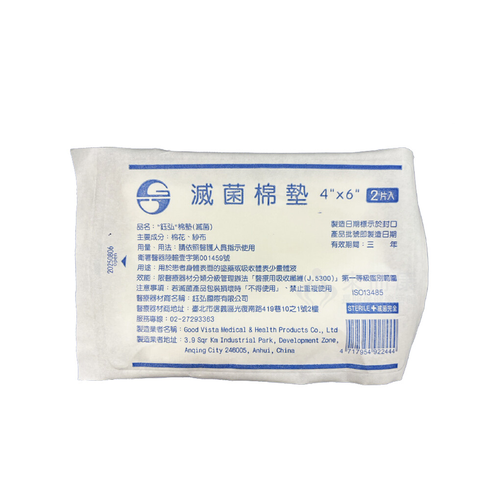 來而康 鈺弘 棉墊 (滅菌) 滅菌棉墊 4X6 2片/包 200包/箱 滅菌 吸收纖維 棉花 紗布