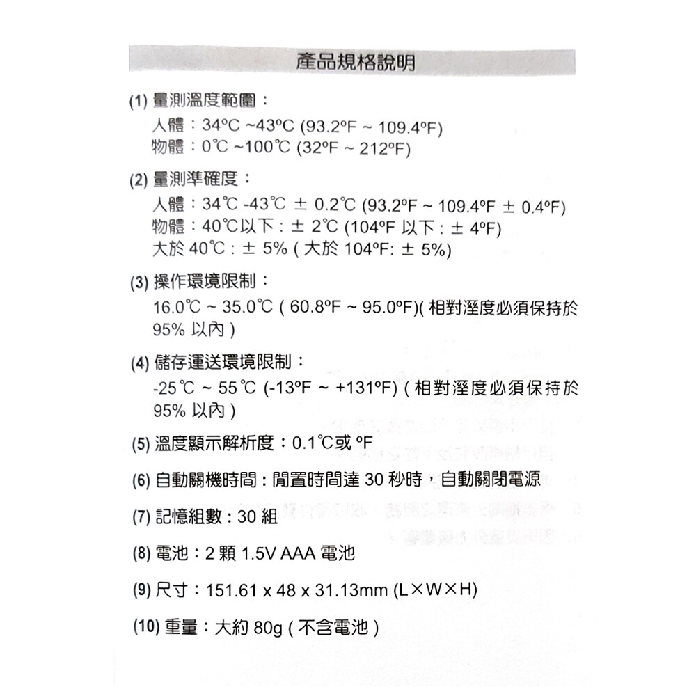 品名:【豪展 AViTA】非接觸式紅外線體溫計/額溫槍( NT61 )