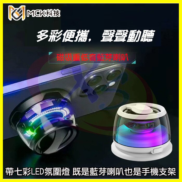 MCK 迷你環繞立體聲藍牙喇叭 重低音砲藍芽音箱 手機磁吸支架一對二無線音響 七彩氛圍燈 免持麥克風