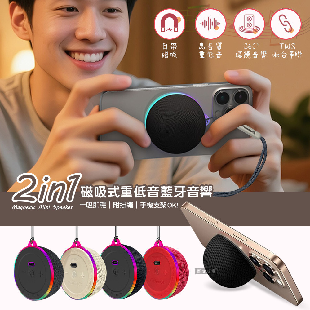 【INFINITY】迷你磁吸式 重低音無線藍牙音響 手機支架藍牙喇叭 360度環繞立體聲