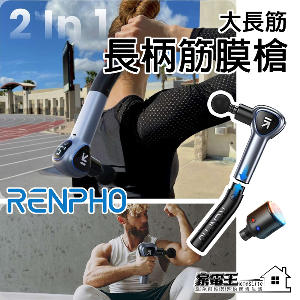 全新〔家電王〕美國RENPHO 長柄筋膜槍 R-C007GY,AI智慧調速 舒緩運動 可調長短、冷暖,電動筋膜按摩槍