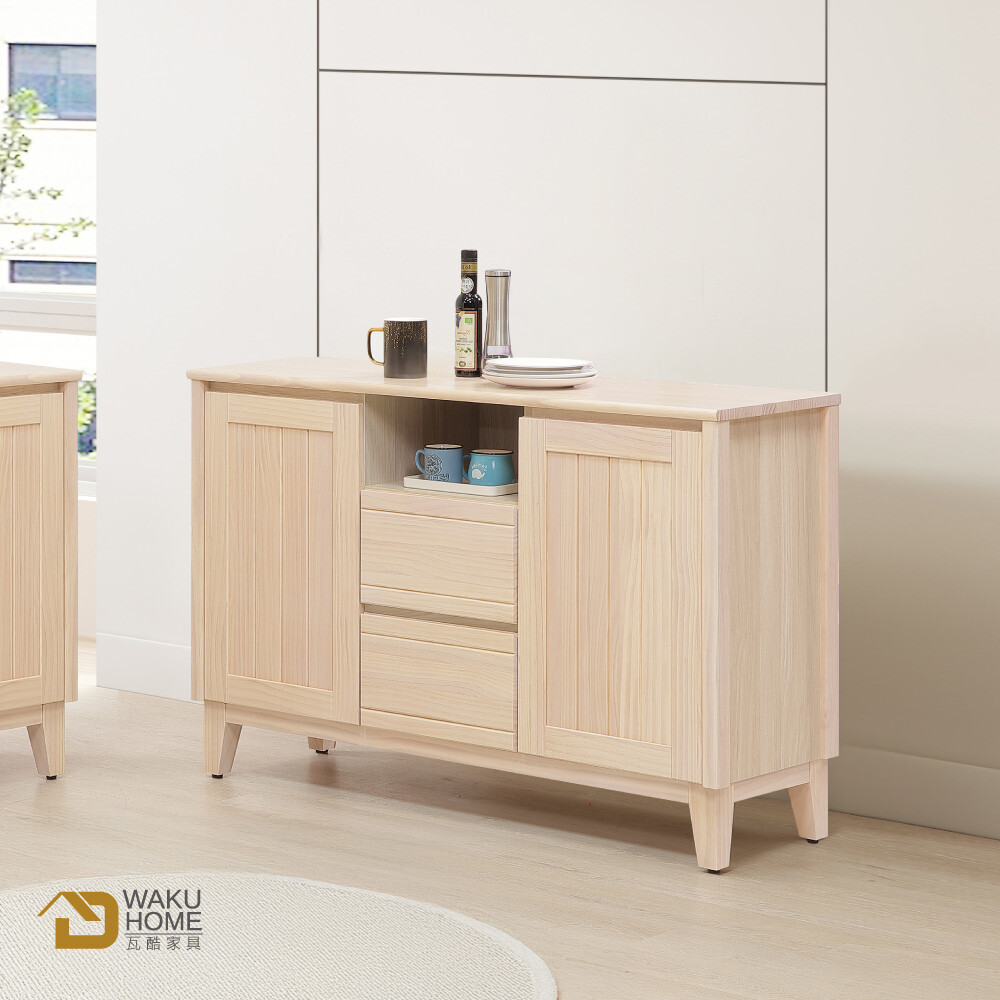 WAKUHOME 瓦酷家具Creamy實木洗白4尺餐櫃A010-825