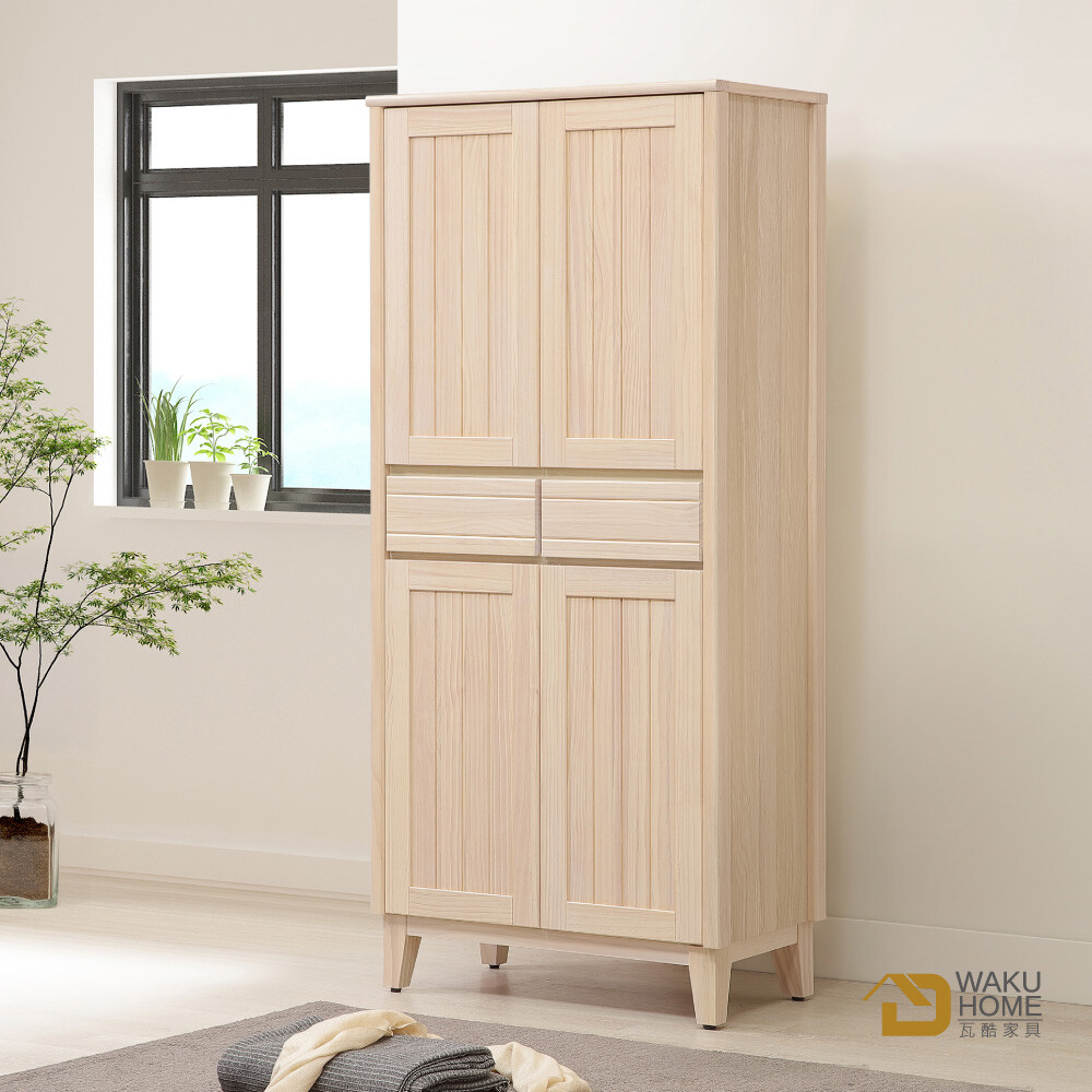 WAKUHOME 瓦酷家具Creamy實木洗白2.7尺高鞋櫃A010-829