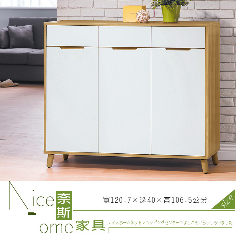 門片採用油壓緩衝鉸鏈分類 標籤 尺寸 寬120.7×深40×高106.5公分 材質 面板.底板.側板採用壓紋耐磨木心板