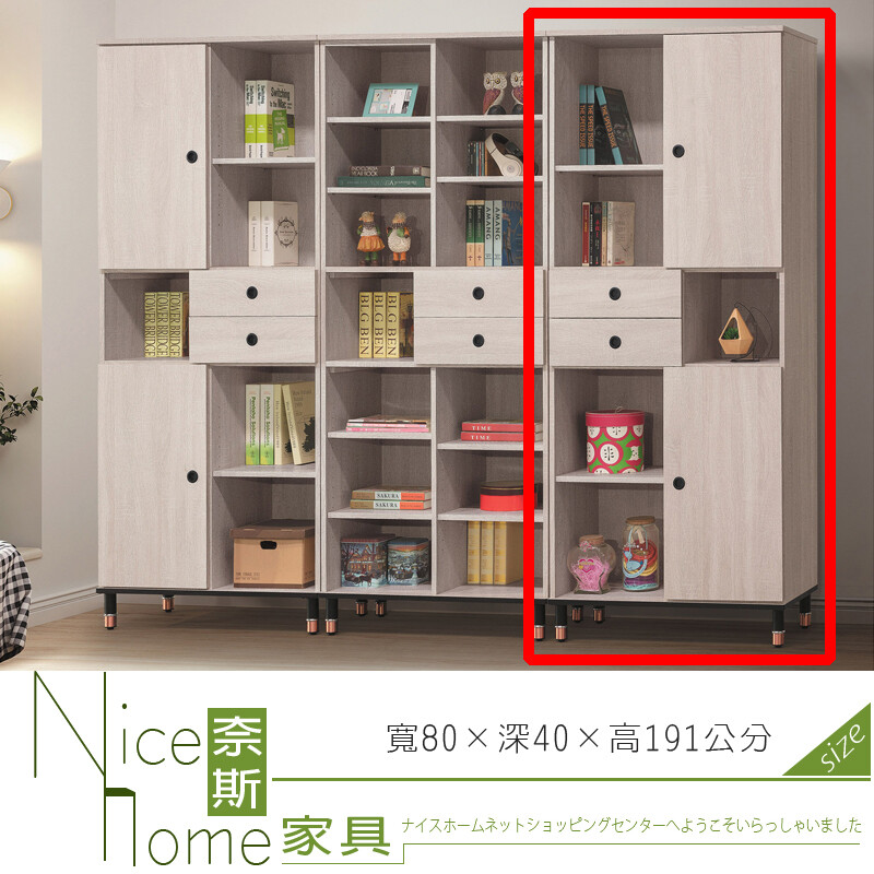 TEL: (02)2828-0860 手機 / Line ID:0905-423-752商品評價你可能也會喜歡《奈斯家具Nice》455-8-HT 鋼刷白3×7尺開放書櫃(620)56640《奈斯家具Nice》455-6-HT 鋼刷白3×7尺開放書櫃/左門(618)60480【obis】MONET晶鑽二線硬式獨立筒無毒床墊-雙人特大6×7尺175128.8折1人購買11《奈斯家具Nice》455-3-HT 鋼刷白3.5尺二抽書桌下座(602)42240《奈斯家具Nice》455-4-HT 鋼刷白4尺三抽書桌下座(603)47040《奈斯家具Nice》455-1-HT 鋼刷白3.5尺書桌下座(600)44160《奈斯家具Nice》455-2-HT 鋼刷白4尺書桌下座(601)56640《奈斯家具Nice》544-1-HT 原切白/原切/3×7尺衣櫥65280《奈斯家具Nice》869-5-HA 艾芮兒鋼刷白2.6尺書櫃(619右)62400《奈斯家具Nice》500-7-HT 派蒙灰橡木3×7尺衣櫥53760《奈斯家具Nice》80-19-HT 肯詩特烤白雙色7×7尺衣櫥295680《奈斯家具Nice》510-7-HT 派蒙淺橡木3×7尺衣櫥53760《奈斯家具Nice》210-4-HT 愛黛兒烤白3×7單吊衣櫃104640《奈斯家具Nice》210-5-HT 愛黛兒烤白3×7三抽衣櫃114240《奈斯家具Nice》267-01-HV 艾美白梧桐3×6尺開放書櫃35520《奈斯家具Nice》267-04-HV 艾美白梧桐2×3尺開放書櫃17280《奈斯家具Nice》433-02-HG 鋼刷雞翅木3×7尺衣櫃/衣櫥88320《奈斯家具Nice》429-06-HG 鋼刷雞翅木3×7尺衣櫥/衣櫃88320《奈斯家具Nice》455-03-HL 芃芮德7尺床邊櫃74880