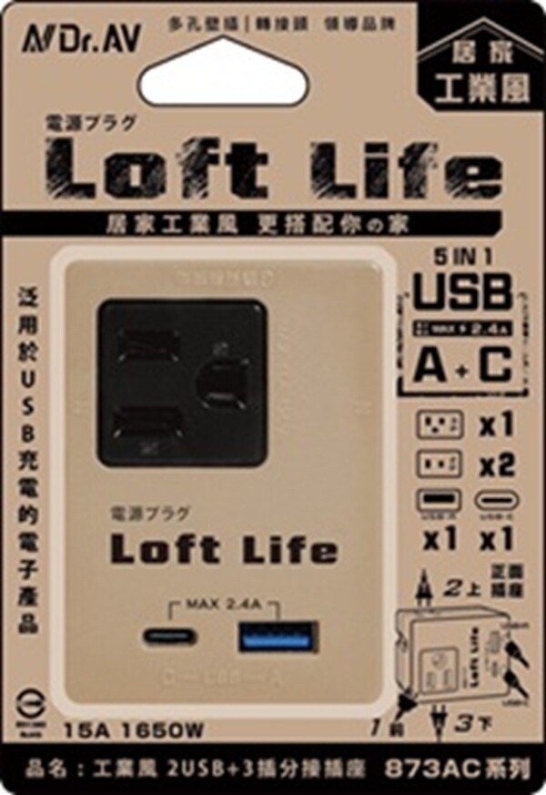 🔹LL-873AC 工業風2USB+3插分接插座 奶茶色