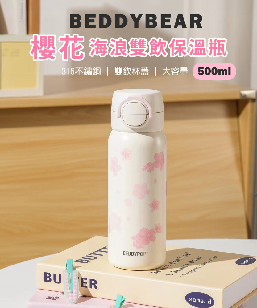【品名】BEDDYBEAR杯具熊 櫻花雙飲316不鏽鋼保溫瓶 直飲保溫杯 吸管杯