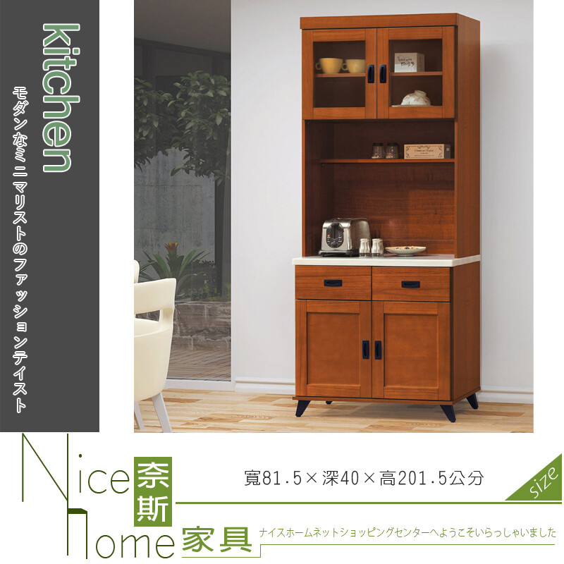 《奈斯家具Nice》237-3-HL 樟木色2.7尺石面餐櫃/碗盤櫃/全組(Q31-1+Q31)