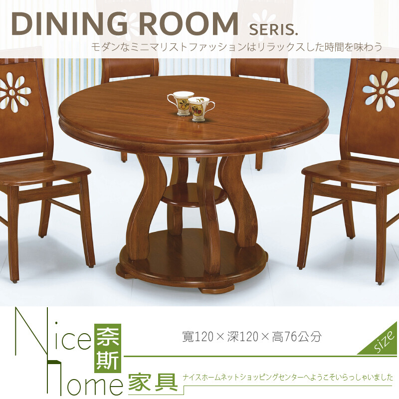 實木分類 標籤 尺寸 寬120×深120×高76公分 材質 實木 運送方式 廠商出貨,宅配到府 ( 限台灣本島地區,不含郵政信箱 ) 配送說明 本商品為客約配送商品,付款後商店將於 2 個工作天內與您聯繫約定配送時間,請保持手機暢通 ( 商店將優先聯繫收件人 )。
