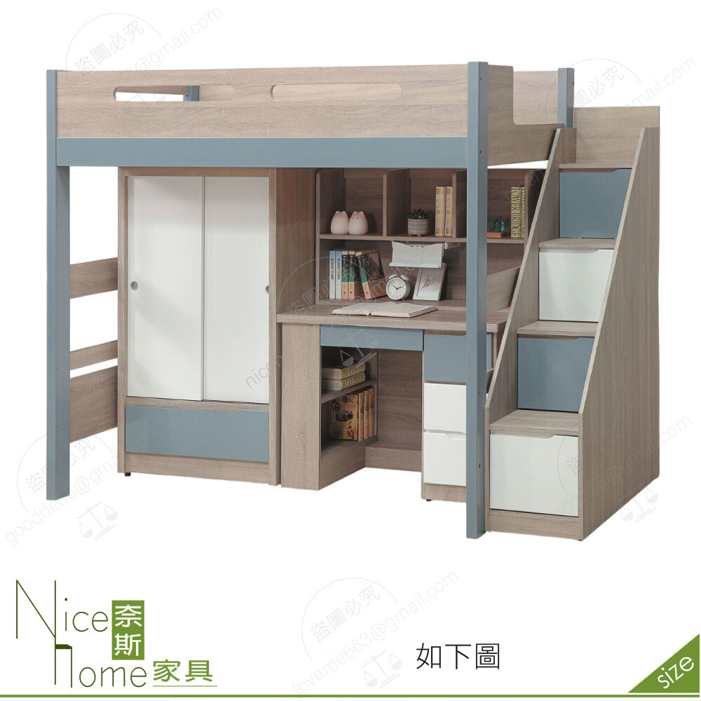 電腦桌:寬103.5×深56.5×高136公分材質 高床灰色部分皆為實木 床道護欄為雙面耐磨木心板