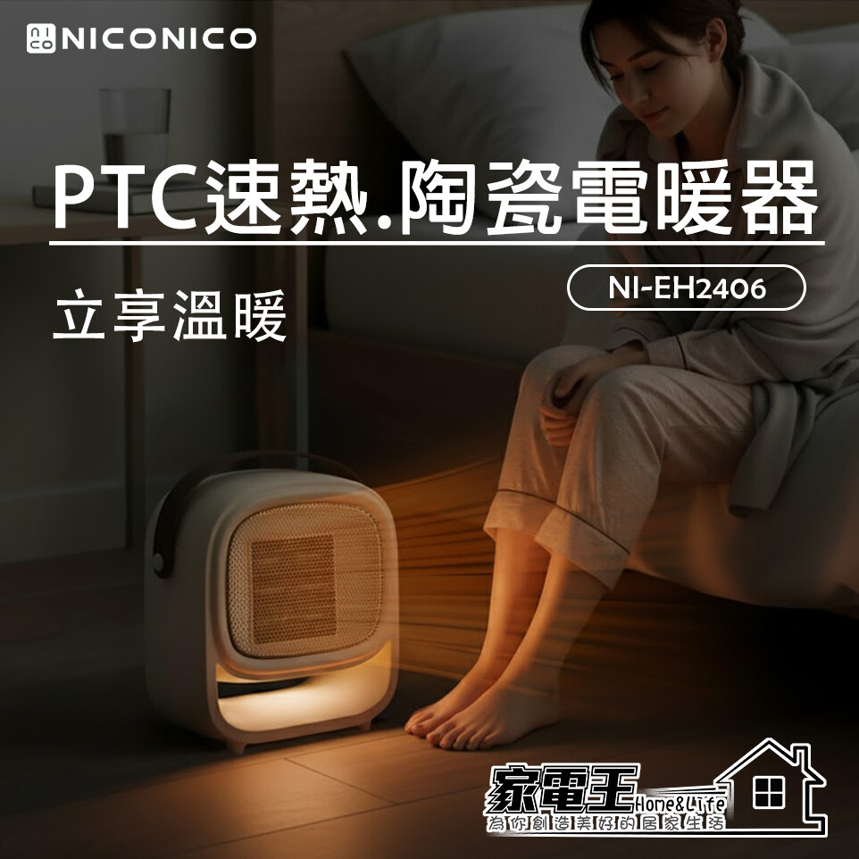 免運NICONICO,PTC陶瓷速熱電暖器 NI-EH2406,快速加熱恆溫 氛圍燈,電暖爐暖風機