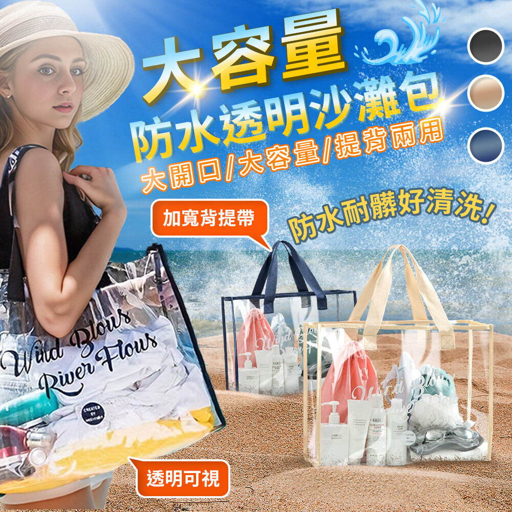 優惠方案方案1 1入 售價$99 均價$99 方案2 2入 售價$190 均價$95 方案3 3入 售價$267 均價$89 方案4 6入 售價$510 均價$85 方案5 12入 售價$948 均價$79 方案6 24入 售價$1656 均價$69 商品介紹韓系大容量防水透明沙灘游泳包