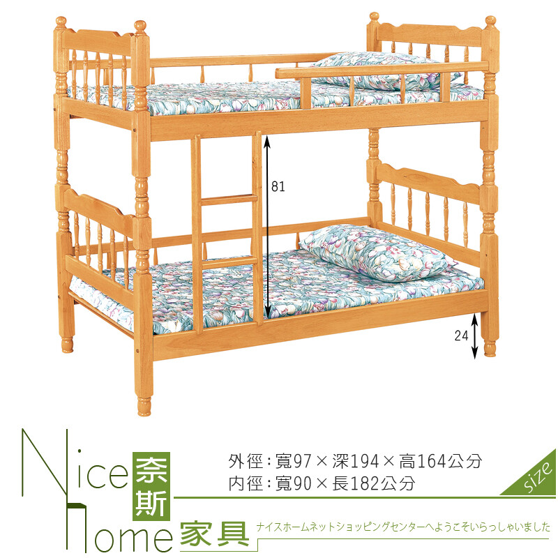 TEL: (02)2828-0860 手機 / Line ID:0905-423-752商品評價你可能也會喜歡ASSARI-日式全實木插座雙層床架126183.7折12人購買218《奈斯家具Nice》094-2-HA 白木3.5尺圓柱雙層床/201132480【歐風別館】經典松木全實木雙層床【基隆至台中免運費】149761人購買17《奈斯家具Nice》590-02-HA 白木3.5尺方柱雙層床架/不含床邊櫃132480《奈斯家具Nice》131-001-HG 白木3尺方柱雙層床B欄92160【空間特工】免螺絲角鋼單人上下舖-加大加厚 雙層床 子母床 兒童床 學生床 加大單人床138141人購買11【空間特工】免螺絲角鋼單人雙層床-標準款 單人上下舖 架高床 高架床 子母床 學生床 兒童床123749人購買233《奈斯家具Nice》132-001-HG 白木3.5尺方柱直板雙層床123840《奈斯家具Nice》164-02-HG 白木3.5尺大方柱雙層床A欄125760《奈斯家具Nice》164-01-HG 白木3.5尺大方柱雙層床B欄120000《奈斯家具Nice》69-1-HB 2寸角方柱3尺雙層床/單欄96000《奈斯家具Nice》134-001-HG 白木3尺圓柱雙層床(202)116160《奈斯家具Nice》094-03-HK 派克3.5尺柚木色雙層床168960《奈斯家具Nice》111-02-HL 3.5尺柚木色方柱雙層床137280《奈斯家具Nice》093-1-HA 白楓木3.7尺雙層床207360《奈斯家具Nice》094-01-HK 亞特雙層床/不含床邊櫃124800《奈斯家具Nice》093-3-HA 松木全實木雙層床138240《奈斯家具Nice》600-04-HK 水星階梯方柱雙層床230400《奈斯家具Nice》091-1-HA 烏心石雙層床/含子床213120
