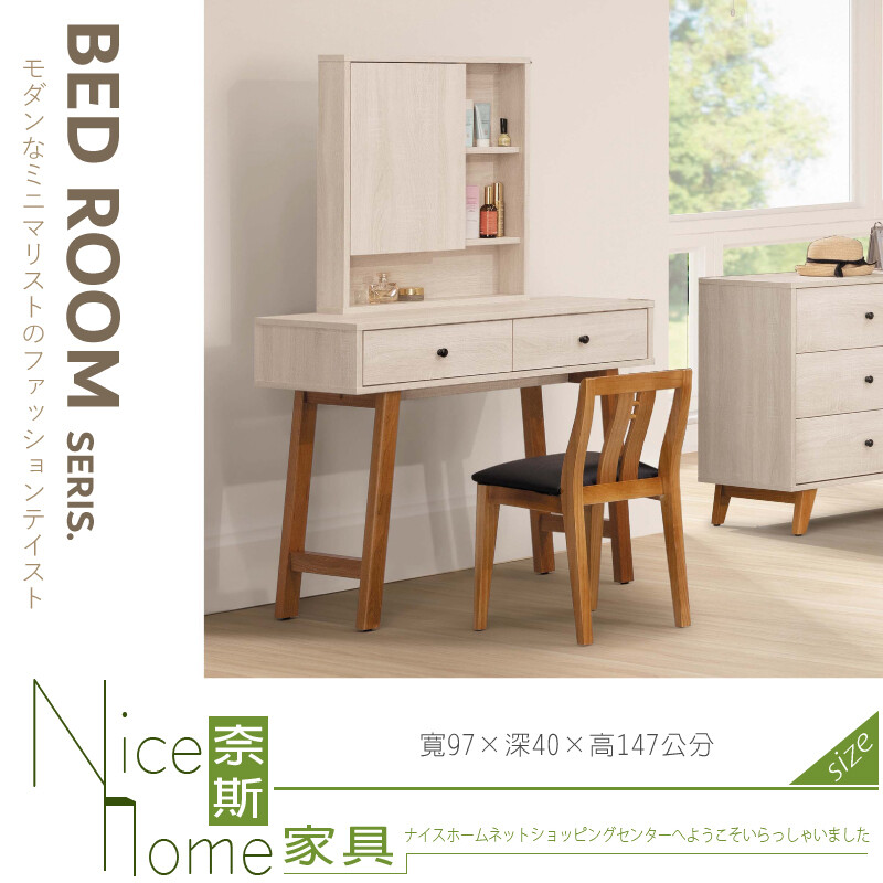 TEL: (02)2828-0860 手機 / Line ID:0905-423-752商品評價你可能也會喜歡《奈斯家具Nice》219-07-HX (塑鋼材質)2尺開放書櫃-白色41281人購買12【綠家居】普蓋爾 現代3尺開合式鏡台/化妝台組合(含化妝椅+側邊櫃)117851人購買15【綠家居】福瑞 梣木紋2.7尺旋轉式鏡台/化妝台組合(含化妝椅)80305折1人購買12《奈斯家具Nice》510-07-HA 卡莫娜米白3尺鏡台/化妝台/含椅104640006【E家工廠】化妝桌 化妝臺 送化妝凳 大容量化妝桌 梳妝桌 梳妝台 鏡台 收納化妝桌163111人購買522《奈斯家具Nice》515-07-HA 丹尼2尺鏡台/化妝台/含椅48960《奈斯家具Nice》558-07-HA 布萊德3.2尺鏡台/化妝台/含椅111360《奈斯家具Nice》500-09-HA 蘇菲亞灰橡色3尺鏡台/含椅86400斐雅生活居家 Hans工業生活 100 公分茶几/電視櫃 (簡易組裝-DIY)15793人購買113《奈斯家具Nice》237-3-HA 波達斯白橡木2尺鏡台/含椅73920《奈斯家具Nice》237-2-HA 波達斯白橡木3尺鏡台/含椅100800【現貨】電腦桌 床邊桌 07#1系列60CM床邊電腦桌 升降桌 萬用桌 桌子 懶人桌 工作桌 茶几10531人購買112《奈斯家具Nice》115-05-HA 格倫床頭櫃33600《奈斯家具Nice》115-06-HA 格倫六斗櫃80640斐雅生活居家 Hans工業生活 100 公分茶几 (簡易組裝-DIY)15368人購買162《奈斯家具Nice》115-08-HA 格倫7尺推門衣櫥/衣櫃277440《奈斯家具Nice》305-06-HA 米希亞白榆木雙色3尺鏡台/化妝台/含椅119040《奈斯家具Nice》021-02-HA 灰橡色2尺鏡台/含椅63360《奈斯家具Nice》501-07-HK 雷克斯2尺鏡台/化妝台/含椅76800