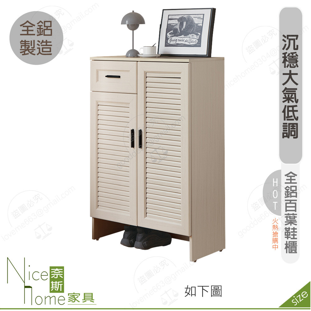 TEL: (02)2828-0860 手機 / Line ID:0905-423-752商品評價你可能也會喜歡《奈斯家具Nice》428-01-HA 蘇香桐全鋁百葉2.6×7尺高鞋櫃233280《奈斯家具Nice》428-03-HA 蘇香桐全鋁4尺百葉鞋櫃189120《奈斯家具Nice》429-02-HA 蘇香桐全鋁2.6尺跳色鞋櫃127680《奈斯家具Nice》417-02-HA 蘇香桐全鋁5.3尺雙面櫃265920《奈斯家具Nice》429-01-HA 蘇香桐全鋁4尺跳色鞋櫃177600《奈斯家具Nice》417-01-HA 蘇香桐全鋁4尺雙面櫃221760《奈斯家具Nice》427-02-HA 荷里木全鋁1.3×6尺鞋櫃119040《奈斯家具Nice》426-02-HA 蘇香桐全鋁陽台洗衣櫃/向左155520《奈斯家具Nice》427-03-HA 荷里木全鋁3×6尺鞋櫃190080《奈斯家具Nice》039-02-HH 2.6尺木心板鞋櫃40320《奈斯家具Nice》070-02-HC 法蘭2.6尺玄關鞋櫃81600《奈斯家具Nice》607-02-HJ 維特2.6尺坐式鞋櫃35520《奈斯家具Nice》237-02-HC 小北歐2.6尺鞋櫃81600《奈斯家具Nice》426-01-HA 蘇香桐全鋁洗衣櫃/無附水龍頭111360《奈斯家具Nice》427-01-HA 荷里木全鋁6尺高四門鞋櫃192960《奈斯家具Nice》610-02-HA 時尚1.3×6尺高鞋櫃55680《奈斯家具Nice》372-02-HA 麥莉雅白橡色2.7尺鞋櫃51840《奈斯家具Nice》169-02-HA 大自然原橡色3×6尺高鞋櫃74880《奈斯家具Nice》505-5-HL 樟木百葉3尺鞋櫃(813)76800