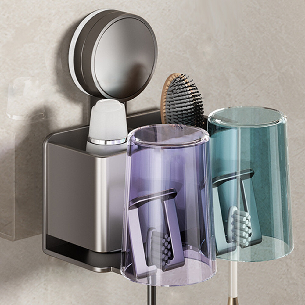 【COMET】雙人款吸盤式牙刷置物架附漱口杯x2(洗漱置物架 置物架 漱口杯架/4B08Q2A-X)