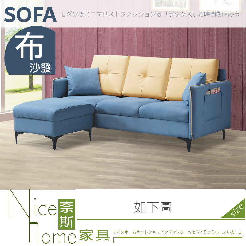 麻布藍色 抱枕顏色隨機 鐵腳分類 標籤 尺寸 寬183×深86×高78公分 材質 木架 海棉 背墊 米白皮 咖啡合成皮