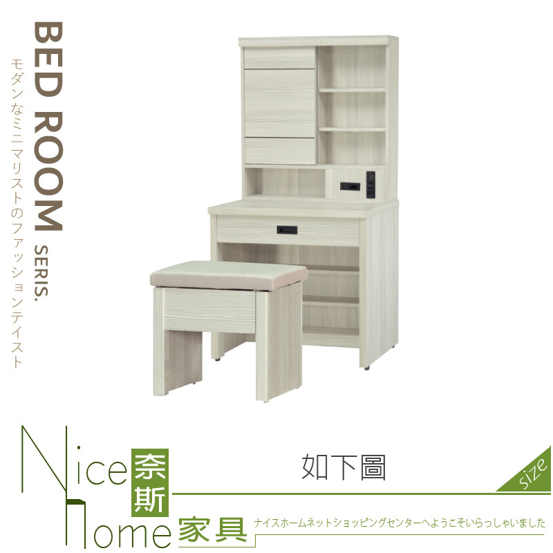 TEL: (02)2828-0860 手機 / Line ID:0905-423-752商品評價你可能也會喜歡【綠家居】福瑞 梣木紋2.7尺旋轉式鏡台/化妝台組合(含化妝椅)80305折1人購買12【綠家居】普蓋爾 現代3尺開合式鏡台/化妝台組合(含化妝椅+側邊櫃)117851人購買15《奈斯家具Nice》153-03-HV 原切2.6尺鏡台/化妝台/含椅74880《奈斯家具Nice》152-03-HV 灰橡2.6尺鏡台/化妝台/含椅74880《奈斯家具Nice》154-03-HV 原切白2.6尺鏡台/化妝台/含椅74880《奈斯家具Nice》187-02-HV 艾斯白雪松2.7尺化妝台/鏡台/含椅97920《奈斯家具Nice》192-05-HV 雪冬2.7尺化妝台/鏡台/含椅92160《奈斯家具Nice》194-02-HV 愛麗絲2尺化妝台/鏡台/含椅57600《奈斯家具Nice》191-05-HV 秋風2.7尺化妝台/鏡台/含椅92160《奈斯家具Nice》178-01-HV 哈利3尺鏡台/化妝台/含椅83520《奈斯家具Nice》529-06-HL 沐澄2.6尺鏡台/化妝台/含椅96960《奈斯家具Nice》639-03-HDC 凱倫2尺鏡台/化妝台/含椅96960《奈斯家具Nice》053-03-HDC 艾倫3尺鏡台/化妝台/含椅132480《奈斯家具Nice》051-03-HDC 卡森2.7尺鏡台/化妝台/含椅110400《奈斯家具Nice》062-03-HQY 奈伊2尺鏡台含椅/化妝台156480《奈斯家具Nice》406-03-HA 蘇香桐全鋁2尺化妝台/鏡台/含椅124800《奈斯家具Nice》004-04-HMB 雪松如意化妝台/鏡台/含椅/A00853760《奈斯家具Nice》147-04-HV 玻璃梧桐2.6尺掀鏡台/化妝台/含椅60480《奈斯家具Nice》157-01-HV 歐妮3尺鏡台/化妝台/含椅 (椅子有改款)92160