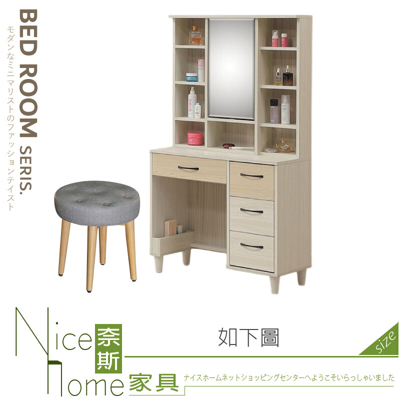 TEL: (02)2828-0860 手機 / Line ID:0905-423-752商品評價你可能也會喜歡【綠家居】福瑞 梣木紋2.7尺旋轉式鏡台/化妝台組合(含化妝椅)80305折1人購買12《奈斯家具Nice》184-04-HV E05#淺灰橡2.7尺化妝台/鏡台/含椅95040《奈斯家具Nice》192-05-HV 雪冬2.7尺化妝台/鏡台/含椅92160《奈斯家具Nice》191-05-HV 秋風2.7尺化妝台/鏡台/含椅92160《奈斯家具Nice》187-02-HV 艾斯白雪松2.7尺化妝台/鏡台/含椅97920《奈斯家具Nice》154-03-HV 原切白2.6尺鏡台/化妝台/含椅74880《奈斯家具Nice》305-06-HA 米希亞白榆木雙色3尺鏡台/化妝台/含椅119040《奈斯家具Nice》305-08-HA 米希亞白榆木雙色2尺鏡台/化妝台/含椅77760《奈斯家具Nice》511-06-HA 麥卡羅白榆木2尺鏡台/化妝台/含椅57600《奈斯家具Nice》189-02-HV 布來恩淺灰橡2.7尺化妝台/鏡台/含椅97920《奈斯家具Nice》185-01-HV D01#白榆木床頭櫃25920《奈斯家具Nice》501-07-HK 雷克斯2尺鏡台/化妝台/含椅76800《奈斯家具Nice》402-07-HG 夏朵白榆木3.2尺化妝台/鏡台111360《奈斯家具Nice》515-07-HA 丹尼2尺鏡台/化妝台/含椅48960《奈斯家具Nice》558-07-HA 布萊德3.2尺鏡台/化妝台/含椅111360《奈斯家具Nice》153-03-HV 原切2.6尺鏡台/化妝台/含椅74880《奈斯家具Nice》155-03-HV 雪松2.6尺鏡台/化妝台/含椅74880《奈斯家具Nice》194-02-HV 愛麗絲2尺化妝台/鏡台/含椅57600《奈斯家具Nice》160-05-HV 901胡仔色2.7尺鏡台/化妝台/含椅 (椅子有改款)104640