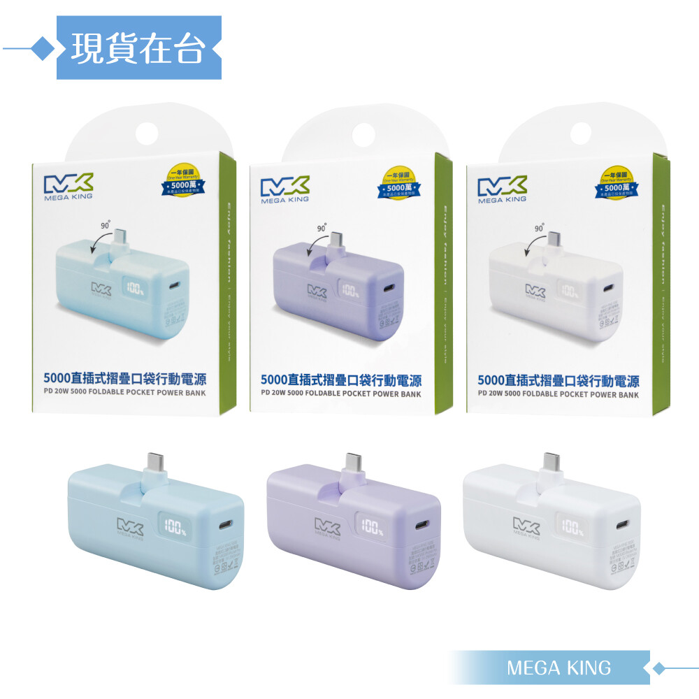 MEGA KING 原廠公司貨 PD直插式摺疊口袋行動電源 (5,000mAh/Type-C接口)