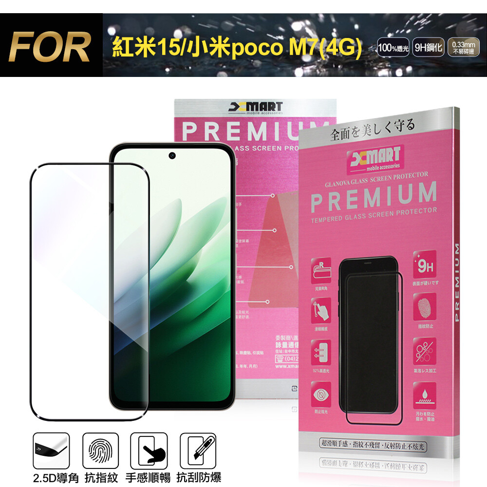 Xmart 紅米15 / 小米poco M7(4G) 超透滿版 2.5D 鋼化玻璃貼-黑