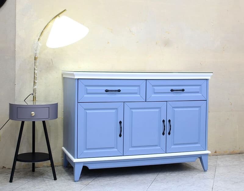 方案1 1入 售價$17700 均價$17700 商品介紹賽普勒斯四尺藍白色餐櫃下座分類 標籤 尺寸 餐櫃 ,121*52*86cm , 腳高9cm