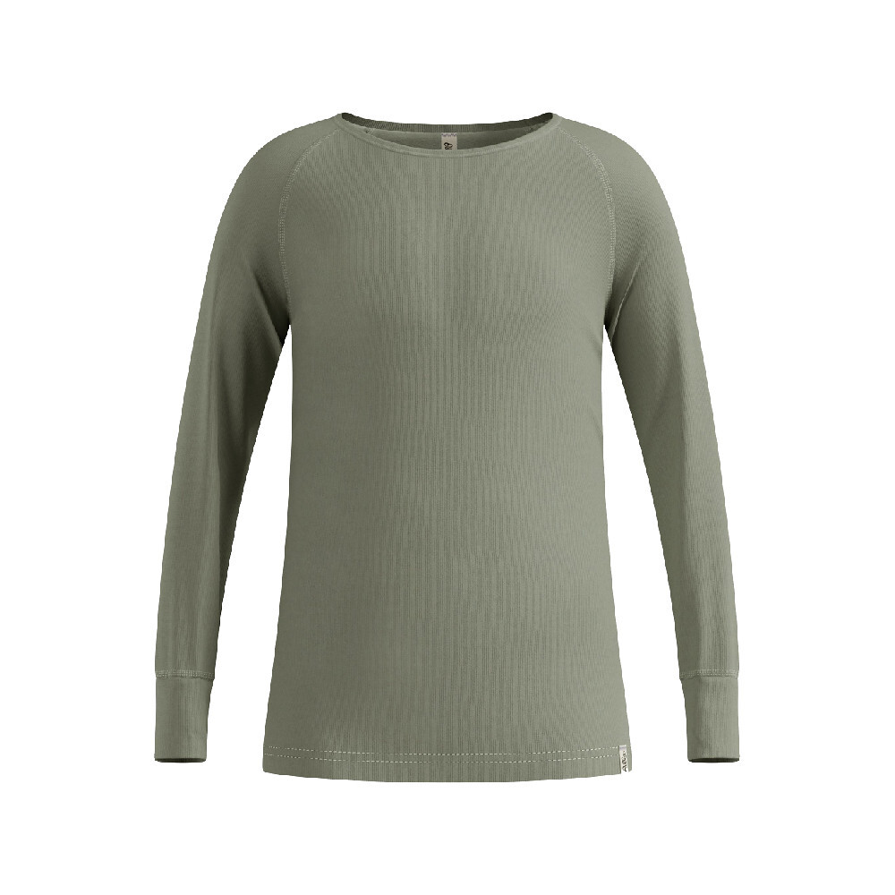 ODLO 瑞士 童 ECO銀離子保暖型圓領上衣《灰綠》159229/衛生衣/內層衣/內搭衣