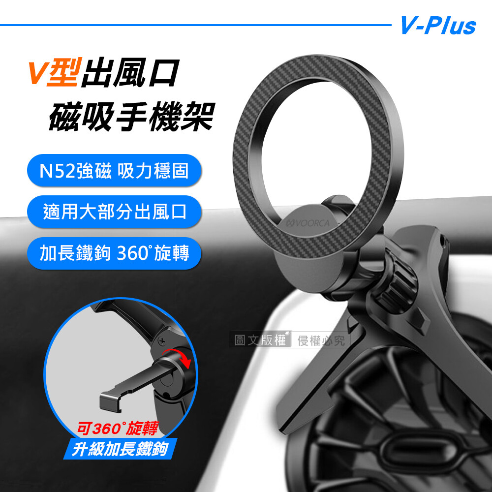 【V-Plus】冷氣出風口車架 N52強力磁吸手機架 360°自由旋轉/加長鐵鉤