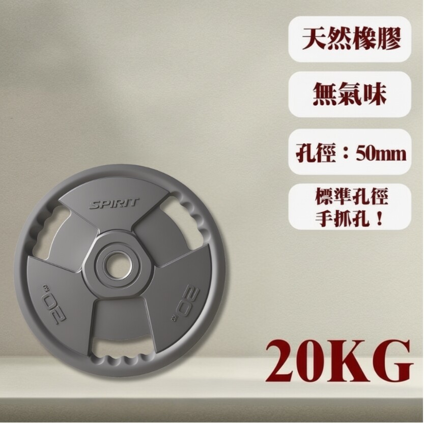 SPIRIT 三孔天然橡膠槓片環保 無毒 耐摔 槓片 舉重槓片 重量訓練槓片20KG