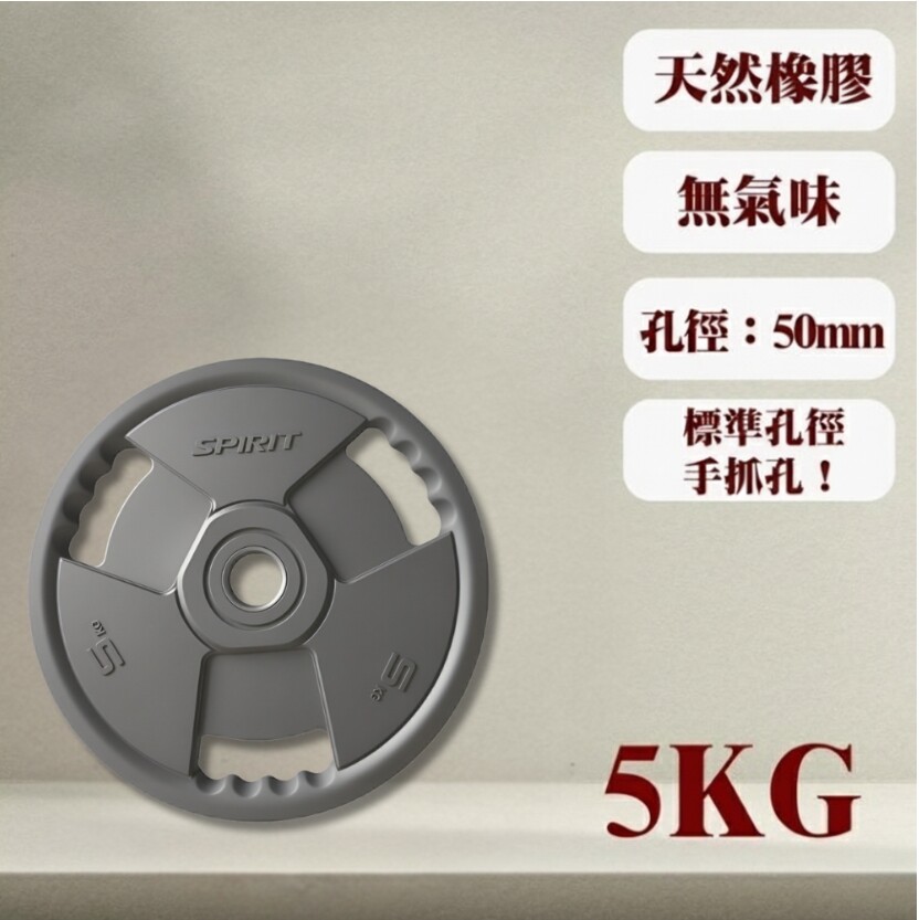 SPIRIT 三孔天然橡膠槓片環保 無毒 耐摔 槓片 舉重槓片 重量訓練槓片5KG