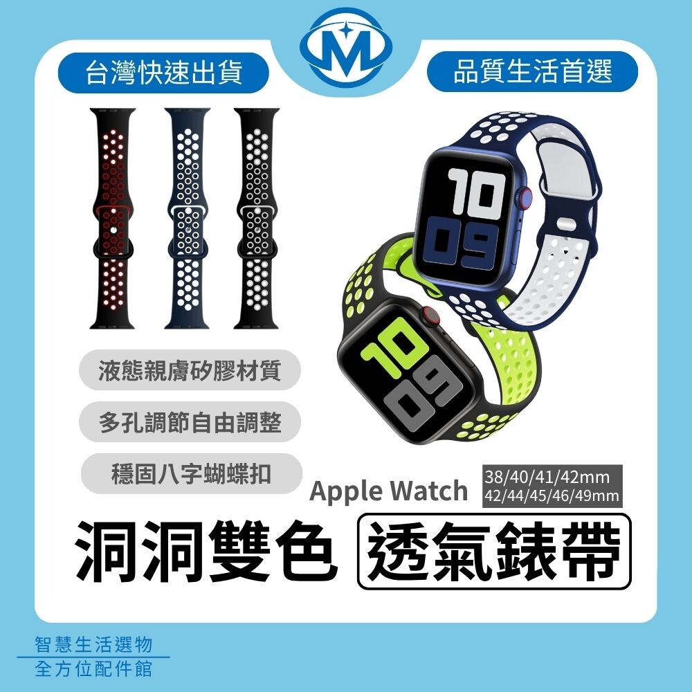 Apple Watch 洞洞雙色 透氣運動錶帶 手錶帶 38 40 41 42 44 45 46mm