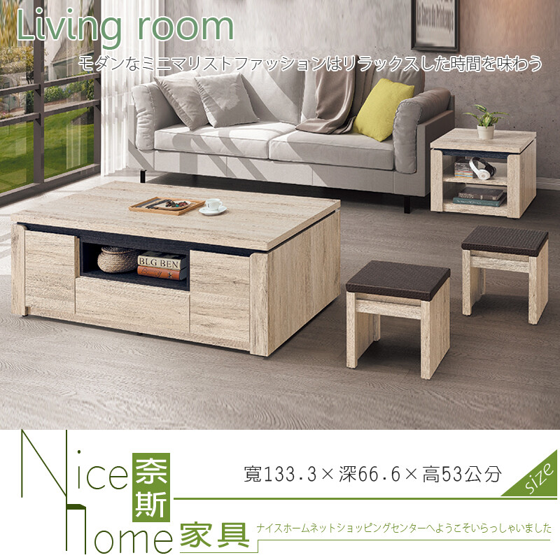 4.含椅分類 標籤 尺寸 大茶几:寬133.3×深66.6×高53公分