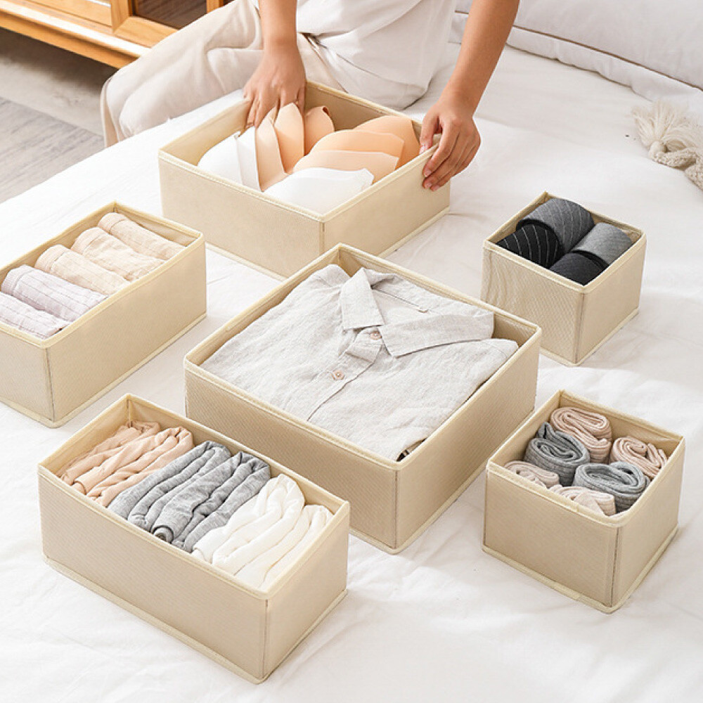 日式分隔收納盒#衣物收納盒#抽屜整理盒#米色收納盒#衣櫥收納#內衣收納#居家小物收納#分類收納#布藝收納盒
