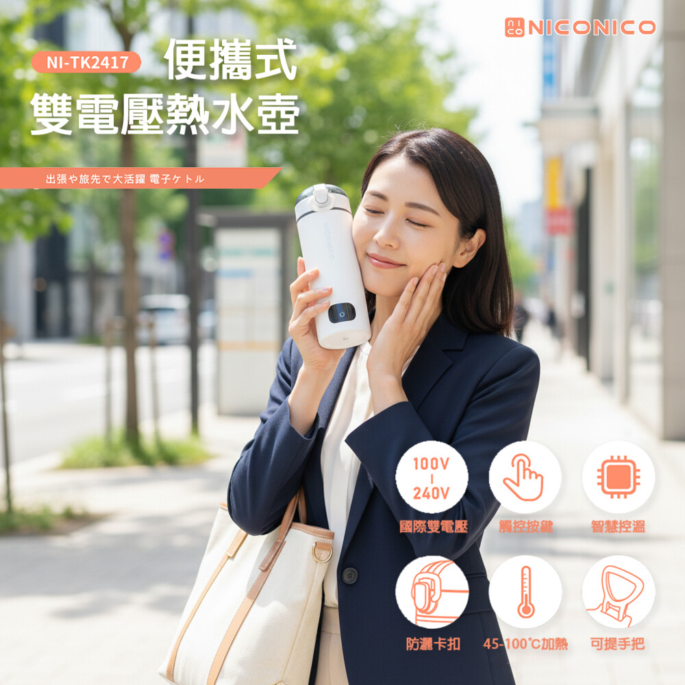 NICONICO 便攜式.雙電壓熱水壺NI-TK2417,可煮水保溫杯,電熱杯燒水瓶熱水杯 快煮壺
