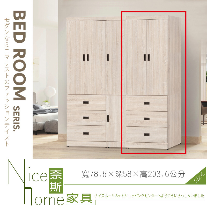 美背 抽屜用鋼珠滑軌分類 標籤 尺寸 寬78.6×深58×高203.6公分 材質 門片用油壓緩衝後鈕