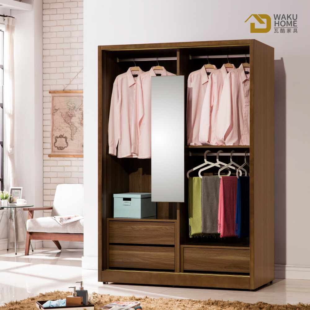 WAKUHOME 瓦酷家具Yamy淺胡桃實木5x7尺推門衣櫥(內附側拉鏡)A010-534