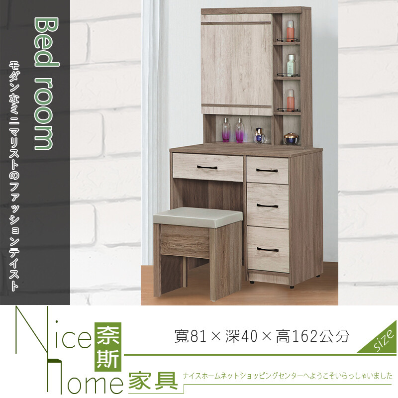 TEL: (02)2828-0860 手機 / Line ID:0905-423-752商品評價你可能也會喜歡《奈斯家具Nice》485-04-HG 琴森鏡台/化妝台/含椅92160《奈斯家具Nice》33-004-HG 艾菲2.8尺化妝台/含椅149760《奈斯家具Nice》450-8-HG 萊德2.7尺化妝台/鏡台/含椅97920《奈斯家具Nice》452-9-HG 特洛伊3.3尺化妝台/鏡台/含椅97920《奈斯家具Nice》022-06-HG 柏克3.2尺掀鏡鏡台/含椅/化妝台85440《奈斯家具Nice》100-12-HG 艾妮雅床頭櫃21120《奈斯家具Nice》100-14-HG 艾妮雅三斗櫃35520《奈斯家具Nice》100-15-HG 艾妮雅五斗櫃63360《奈斯家具Nice》107-13-HJ 洛蒂4.46~7.59尺伸縮鏡台/化妝台/含椅163200《奈斯家具Nice》153-17-HM 迪奧化妝台/含椅108480《奈斯家具Nice》3-3-HB 伊琳諾化妝台/含椅96001《奈斯家具Nice》35-7-HK 布萊德化妝台/含椅107520《奈斯家具Nice》123-6-HD 莫德納化妝台/含椅95040《奈斯家具Nice》127-2-HP 雪莉2尺化妝台/含椅90240《奈斯家具Nice》102-07-HM 貝莎3.3尺化妝台/含椅102720《奈斯家具Nice》564-2-HP 費納2尺化妝台/含椅80640《奈斯家具Nice》118-3-HP 戴維斯2尺化妝台/含椅81600《奈斯家具Nice》102-07-HM 貝莎3.3尺化妝台/含椅92160《奈斯家具Nice》002-06-HT 紀梵希3.3尺化妝台/含椅109440