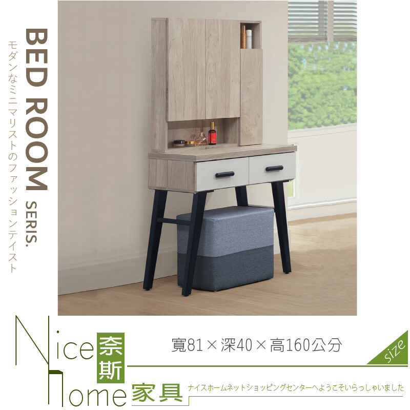 TEL: (02)2828-0860 手機 / Line ID:0905-423-752商品評價你可能也會喜歡【綠家居】福瑞 梣木紋2.7尺旋轉式鏡台/化妝台組合(含化妝椅)80305折1人購買12【綠家居】普蓋爾 現代3尺開合式鏡台/化妝台組合(含化妝椅+側邊櫃)117851人購買15《奈斯家具Nice》009-06-HT 杜恩橡木白2.7尺鏡台/化妝台97920《奈斯家具Nice》441-04-HG 北美橡木2尺化妝台/鏡台62400《奈斯家具Nice》022-06-HG 柏克3.2尺掀鏡鏡台/含椅/化妝台85440《奈斯家具Nice》450-8-HG 萊德2.7尺化妝台/鏡台/含椅97920《奈斯家具Nice》002-06-HG 夏莉2.7尺化妝鏡台/含椅97920《奈斯家具Nice》040-06-HD 寶貝2.7尺雪松鏡台/含鐵椅/化妝台65280《奈斯家具Nice》015-04-HG 伊凡白梧桐2尺鏡台/化妝台95040《奈斯家具Nice》402-07-HG 夏朵白榆木3.2尺化妝台/鏡台111360《奈斯家具Nice》305-06-HA 米希亞白榆木雙色3尺鏡台/化妝台/含椅119040《奈斯家具Nice》511-06-HA 麥卡羅白榆木2尺鏡台/化妝台/含椅57600《奈斯家具Nice》185-07-HV D05#白榆木2.7尺化妝台/鏡台/含椅95040《奈斯家具Nice》311-06-HJ 帕特2尺鏡台/化妝台/含椅97920《奈斯家具Nice》456-06-HL 芃芮德2尺鏡台/化妝台/含椅72960《奈斯家具Nice》505-04-HT 艾維2.7尺鏡台/化妝台96000《奈斯家具Nice》008-08-HG 橡木+白1.5尺三抽轉角櫃/衣櫃81600《奈斯家具Nice》501-06-HT 漢娜3.2尺多功能掀式鏡台/化妝台97920《奈斯家具Nice》008-05-HG 橡木+白二抽床頭櫃32640