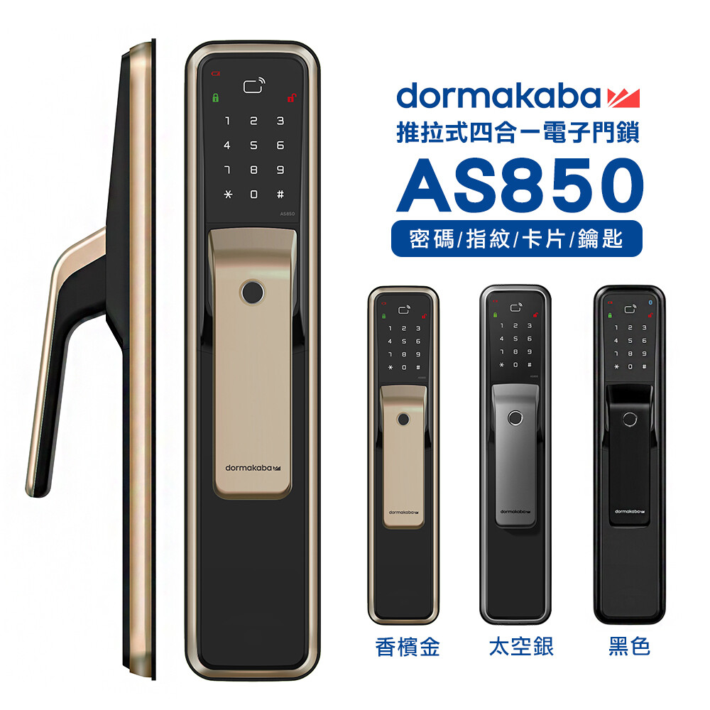 dormakaba 推拉式指紋/卡片/密碼/鑰匙電子鎖AS850(附基本安裝)