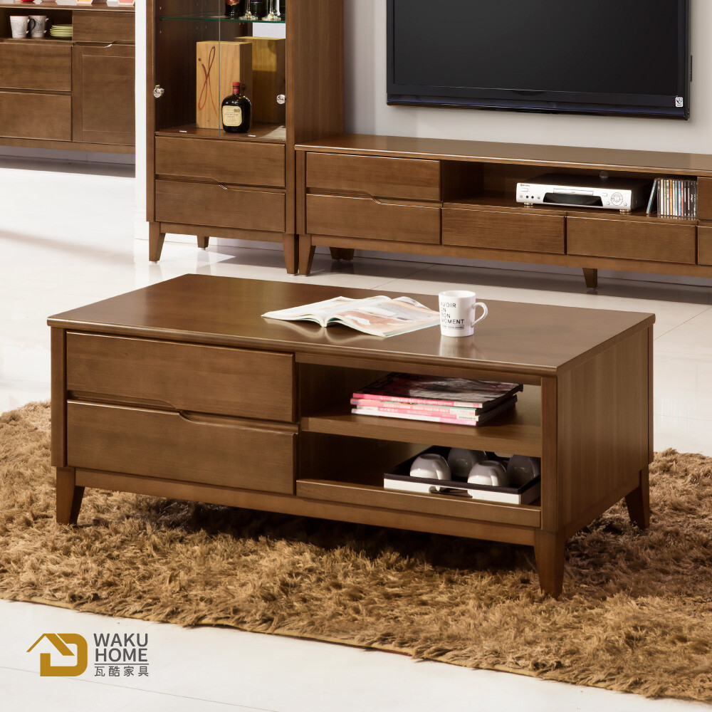 WAKUHOME 瓦酷家具Yamy淺胡桃實木4尺大茶几 (實木面板/檯面/座腳)A010-540