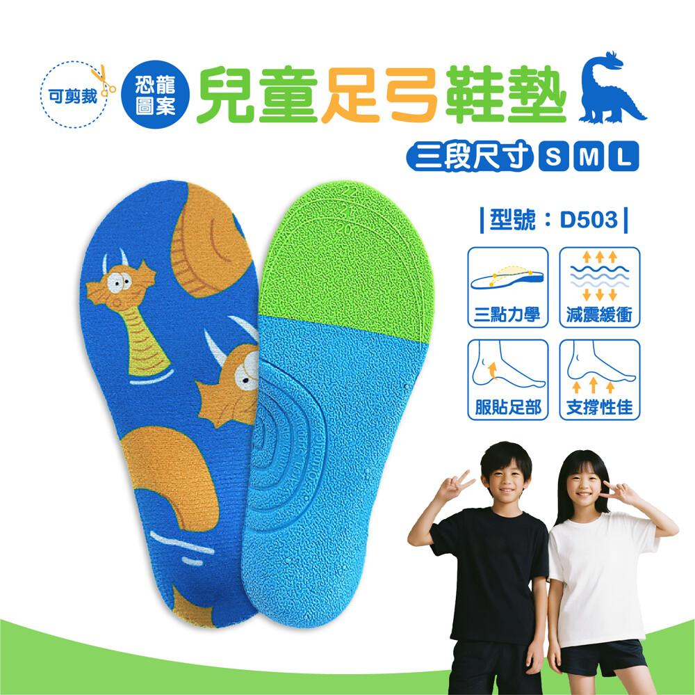 優惠方案方案1 1入 售價$225 均價$225 方案2 2入 售價$426 均價$213 方案3 3入 售價$603 均價$201 商品介紹► 商 品:兒童足弓鞋墊(恐龍圖案)