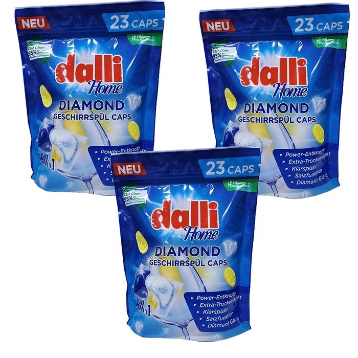 Dalli德國達麗【DALLI-69】鑽石淨亮洗碗凝珠23顆機體清潔軟水光潔洗碗錠洗碗粉洗碗膠囊三入