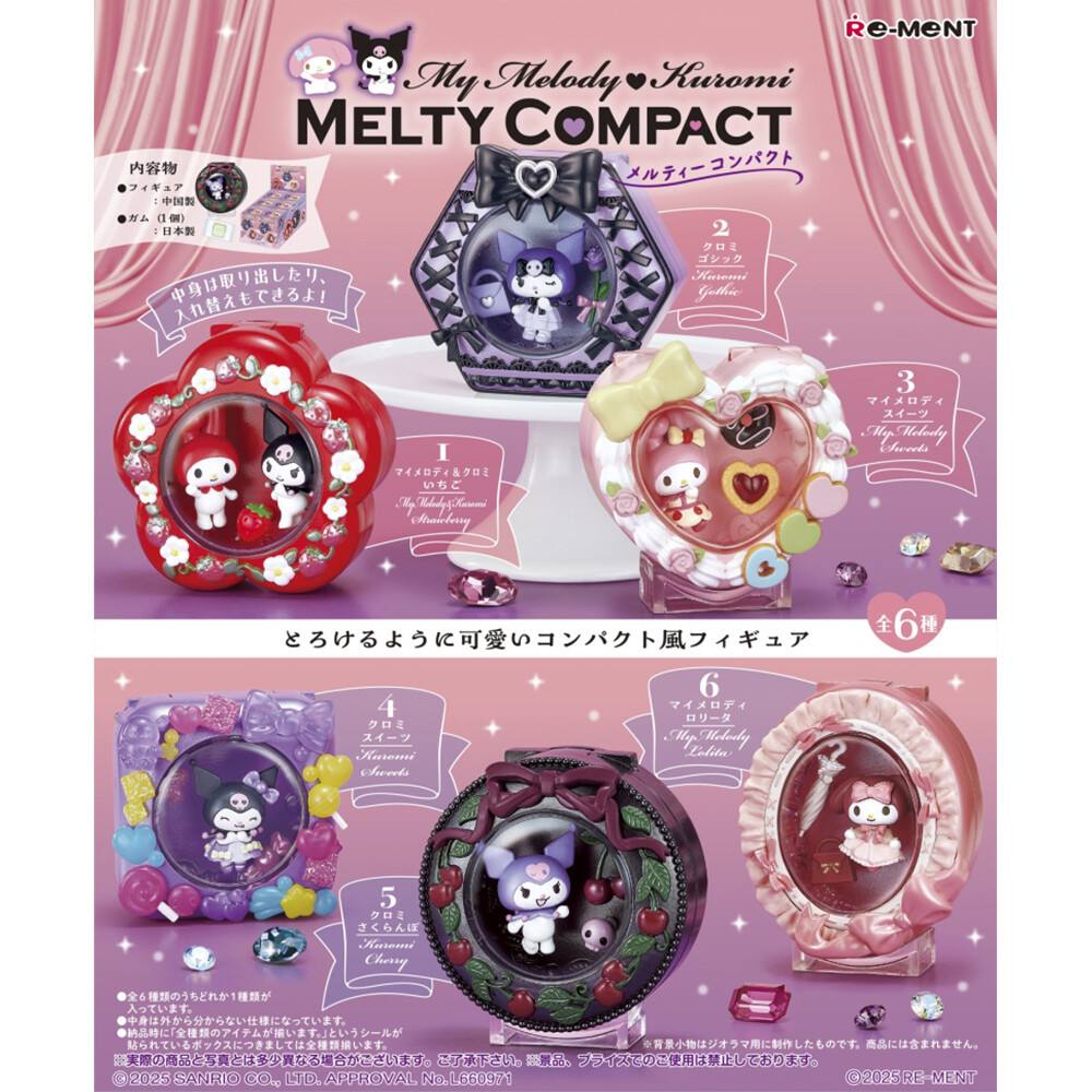 隨機1款 美樂蒂&酷洛米 Melty粉餅盒 盒玩 公仔 擺飾 場景化妝盒 美樂蒂【152721】