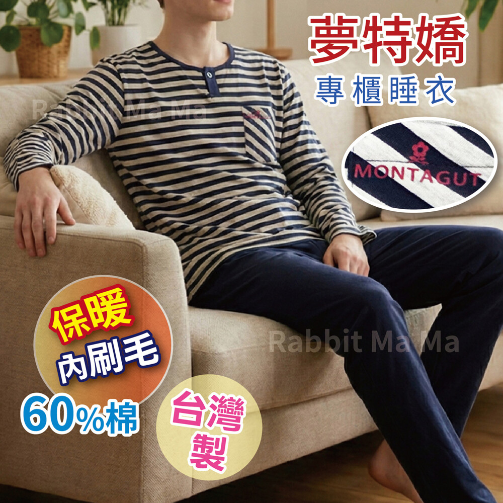 夢特嬌睡衣/台灣製刷毛保暖 條紋 男生睡衣 58508 居家服.男性睡衣 兔子媽媽