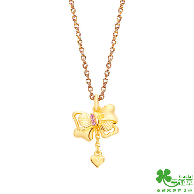 幸運草金飾 情繫永恆黃金/水晶墜子 送項鍊