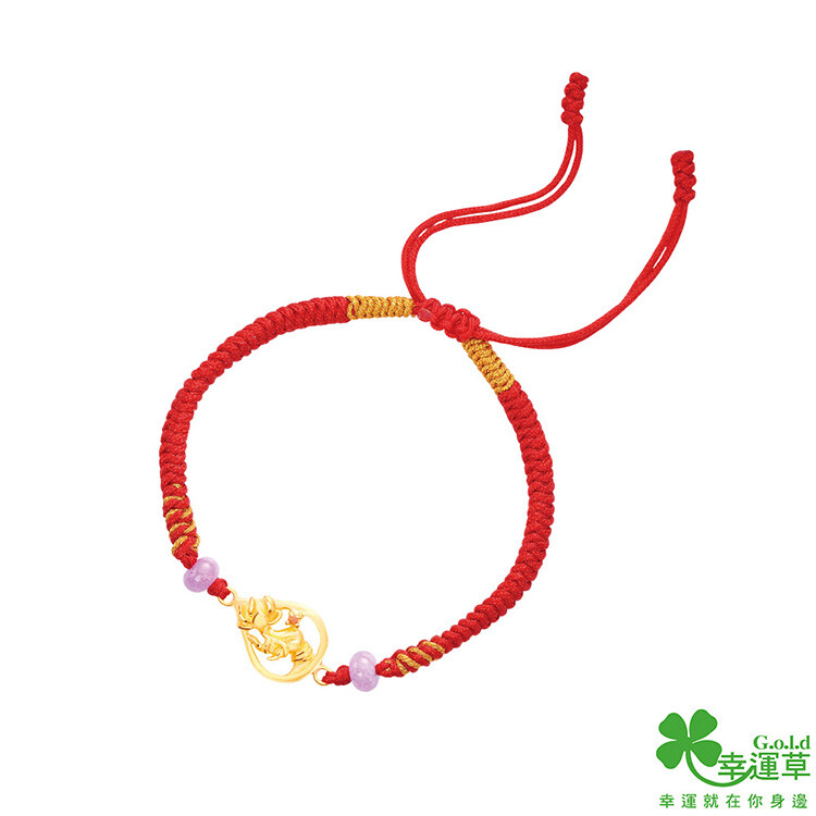 幸運草金飾 如意佛手黃金紅繩編織手環