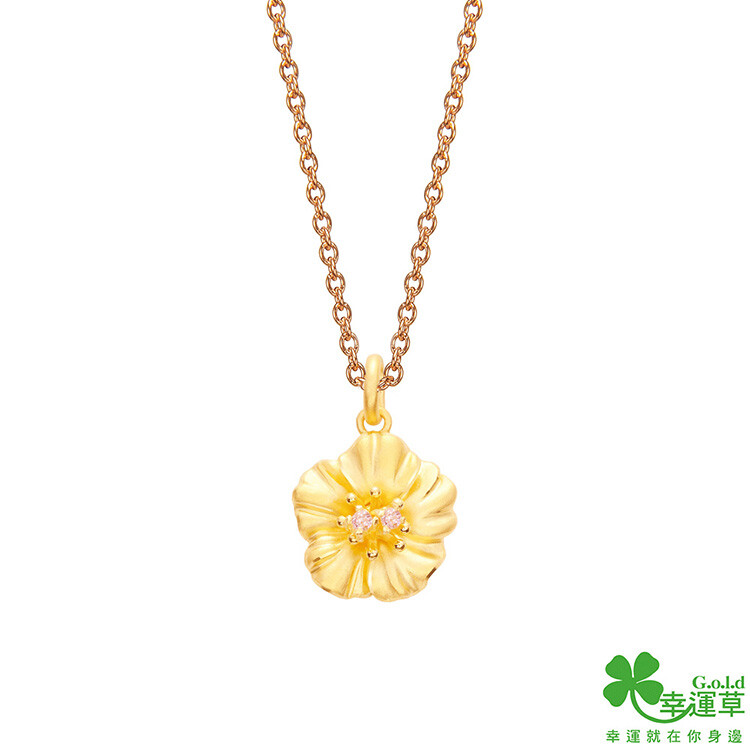 幸運草金飾 柔情扶桑黃金墜子 送項鍊